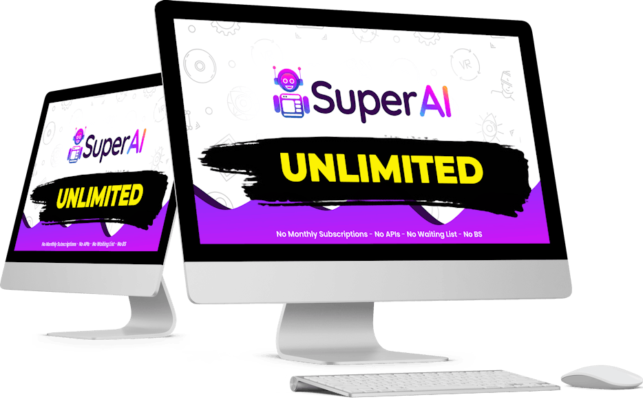 With Super AI Unlimited, you'll be able to Unlock Unlimited Premium AI SuperModels To Generate Unlimited Talking Avatars, Voiceover & Cloning, Image To Motion Videos, AI Virtual Assistant Chatbots, Screen + Webcam Recording, Text To Speech, 4K Images, Sales & Ad Copies, Photo Editing, Audio & Video Conversion, , Marketing Materials & More In Unlimited Niches & Languages For Unlimited Profits...